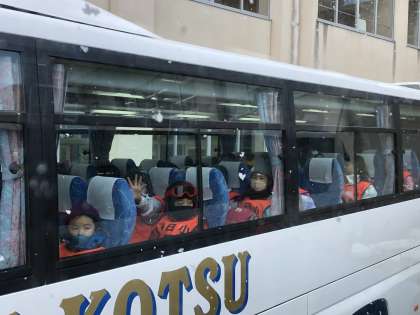 大型バスに乗り、いよいよ出発です!楽しんでいってきます!