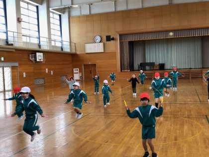 短縄跳びに取り組んでいます。「20秒勝ち残りサバイバル」と称して、20秒間跳び続けられるか挑戦しました。前跳び、後ろ跳び、後ろ駆け足跳び、あや跳び…。上学年に負けないように、がんばっています。