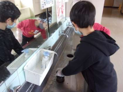 2月7日(火) 自級清掃 公開日 2023/02/07 更新日 2023/02/07 朝日小学校NEWS 清掃時には、どの場所も熱心に掃除をする子供たちです。洗面所を掃除していた1年生も、排水溝の部分までたわしを使ってきれいに磨いていました。自分たちが使っている場所をきれいにしようという気持ちが伝わってきて素敵です。