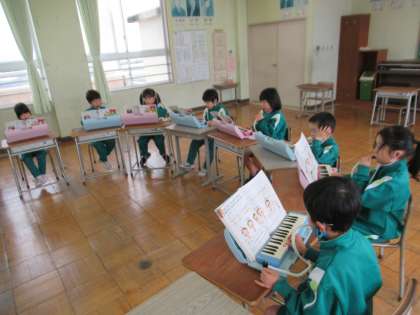 今日は鍵盤ハーモニカの合奏をしています。楽器が好きな1年生はうきうきと楽しそうに鍵盤ハーモニカを演奏しました。
