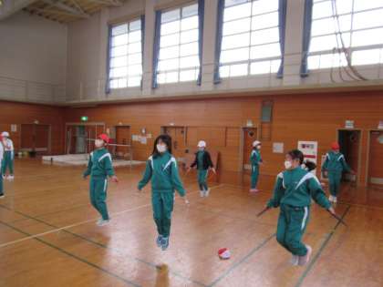 2月8日(水)5・6年 体育タイム 公開日 2023/02/08 更新日 2023/02/08 朝日小学校NEWS 感染症対策のため、学年ごとに分かれて体育館を利用して体育タイムを行いました。今日は5・6年生です。 なわとび大会に向けて、それぞれの種目を練習したり、バスケットボールのシュートの練習をしたりしました。