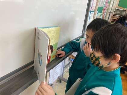 文章に隠れている言葉は何か、問題をつくったり、みんなで考えたりして楽しく学習しています。