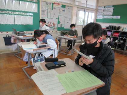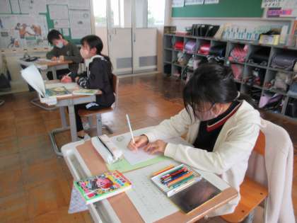 2月16日(木)5年生 国語の学習 公開日 2023/02/16 更新日 2023/02/16 5年生 自分のお気に入りの本の紹介文を書く学習をしています。おすすめの文章を考えたり、イラストを描いたり紙を切って貼ったりして、アピールする方法を考えました。