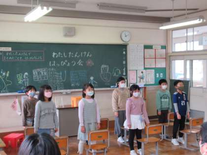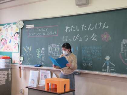 2月18日(土)2年生 わたしたんけん はっぴょう会 公開日 2023/02/18 更新日 2023/02/18 2年生 2年生は、小さい頃の自分について家族にインタビューして分かったことや、今の自分について友達に聞いたことなどをまとめた本を見せながら、友達や保護者の方の前で発表しました。 そして、ここまで育ててくださった保護者の方にありがとうの気持ちを込めて、歌とメダルをプレゼントしました。