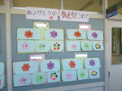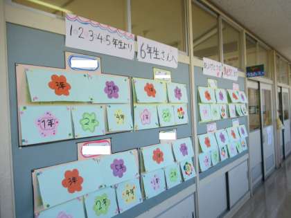 3月8日(水)6年生へありがとうの花 公開日 2023/03/08 更新日 2023/03/08 6年生 6年生教室の前には、1〜5年生が書いた、感謝のメッセージが掲示してあります。6年生との思い出や心あたたまるメッセージがすてきです。