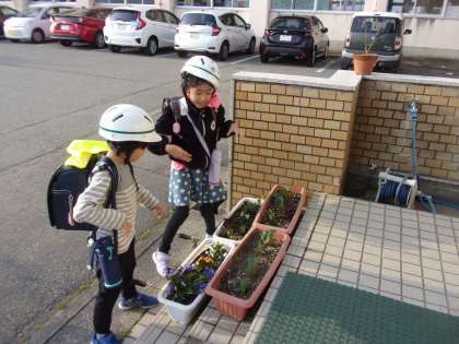 3月9日(木) 春を発見! 公開日 2023/03/09 更新日 2023/03/09 朝日小学校NEWS 玄関前のプランターに植えてあるチューリップが、どんどん成長しています。登校するときに、毎日様子を確認して、「早く咲いてほしいな」と成長を楽しみにしている子供もいます。学校前の畑にはつくしが出ていることを校長先生が発見しました。たくさんの春があちこちで見られます。