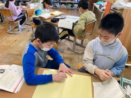 3月10日(金) 4年 国語の学習 公開日 2023/03/10 更新日 2023/03/10 4年生 アンケート結果を整理して資料をつくる学習をしています。棒グラフや表など、分かりやすくまとめるにはどうしたらいいか、友達と相談しながら進めています。