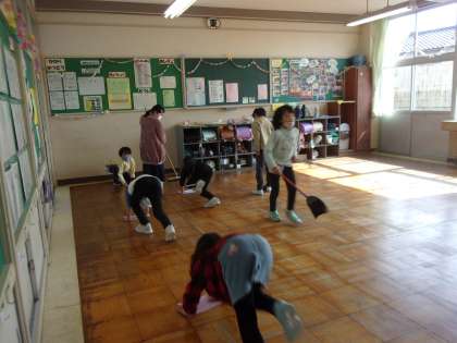 3月10日(金) 大掃除 公開日 2023/03/10 更新日 2023/03/10 朝日小学校NEWS ワックスがけに向けて、各教室の大掃除を行いました。6年生が、下学年の教室に来て荷物運びを手伝ってくれました。手伝う6年生も、手伝ってもらっている下学年もみんな一生懸命に取り組んでいます。