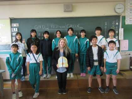 今日は、ALTの先生との最後の学習でした。いつも英語の楽しいゲームを考えてきてくださり、5年生は少しずつ聞くことや話すことが上手になりました。学習の最後に、全員が英語で書いた感謝の言葉を色紙にまとめて、ALTの先生にプレゼントしました。