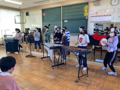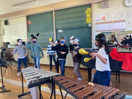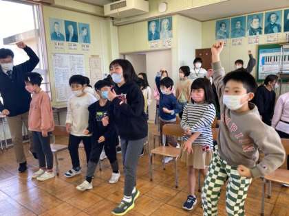 3月22日(水) みんなで楽しく 公開日 2023/03/22 更新日 2023/03/22 朝日小学校NEWS 4年生が、ディズニーパレードと称して、全校みんなを音楽発表に招待しました。 のりのりで合奏し、会場に集まった子供たちも手拍子でパレードを盛り上げました。最後にみんなで音楽に合わせて踊りました。とても楽しいひとときでした。4年生のみんな、ありがとう!