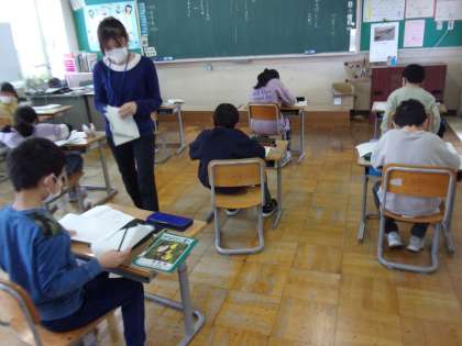この一年間でがんばったことを振り返り、原稿用紙にまとめました。習った漢字を意識して使ったり、句読点を忘れずに付けたりするなど、国語の学習で学んだことを生かして書き進めました。