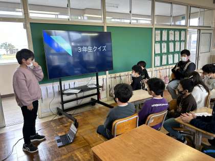 3月23日(木) 3年生 お楽しみ会 公開日 2023/03/23 更新日 2023/03/23 3年生 子供たちは、3年生最後のお楽しみ会を思い切り楽しみました。振り返りでは、「この会のために準備を頑張ったから、みんなが笑顔になれた。」や「この1年間を振り返るクイズやゲームをして、自分たちはステップアップしたと実感できた。」と語りました。