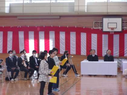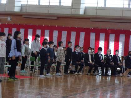 歓迎のあいさつとして、代表の児童3人が、朝日小学校の紹介をし、全員で合唱をしました。2〜6年生は、1年生が入学する今日の日をとても楽しみに待っていました。困ったことがあったら、先生や周りの友達、2〜6年生のお兄さんお姉さんを頼って、みんなでなかよく過ごしていきましょう。