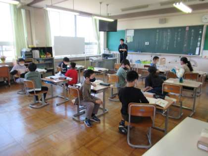 4月10日(月)5年生 国語の学習 公開日 2023/04/10 更新日 2023/04/10 5年生 メモをとりながら人の話を聞く、「インタビューの仕方」について学習をしました。ペアになり、自分の質問の内容や答えを書いたり、人から聞いたことをメモに書いたり、実際にインタビューの練習もしました。
