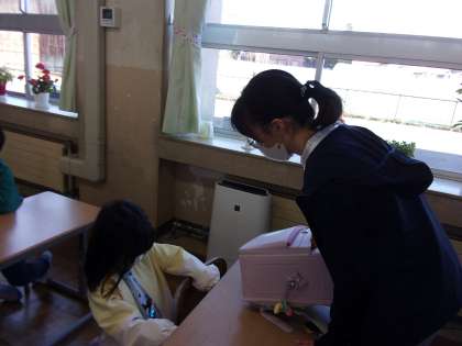 4月10日(月)6年生 1年生のサポート 公開日 2023/04/10 更新日 2023/04/10 6年生 1年生の朝の準備を手伝いました。1年生が困っていることを考え、自分にできることを見付けてサポートしています。