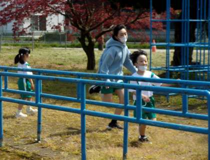 休み時間には、前庭で6年生に誘われて鬼ごっこをしました。「6年生速すぎる」と言いながら夢中に逃げました。他学年と交わりながら、楽しく学び、遊ぶ1年生です。