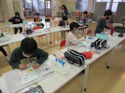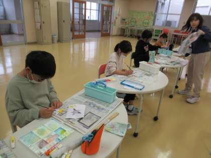 4月18日(火)4年生 学活の時間 公開日 2023/04/18 更新日 2023/04/18 4年生 みんなで話し合って決めた学級目標の、掲示物を作ることにしました。 「何色の画用紙がいいかな?」 「夜のイメージで黒とかどうかな」 「藍色とか青色もいいんじゃないかな」 と楽しそうに話しながら作りました。