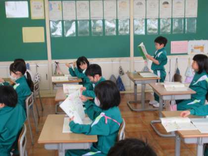 4月19日(水)2年生 国語の学習 公開日 2023/04/19 更新日 2023/04/19 2年生 春に関する詩を読んでいます。一人ずつ立って音読を発表しました。ハキハキと上手に読むことができました。