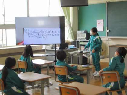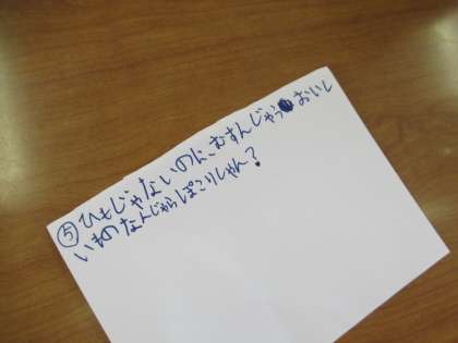 朝の時間に、なぞなぞクイズを出して楽しみました。