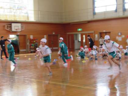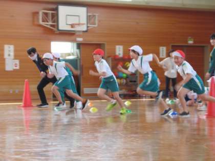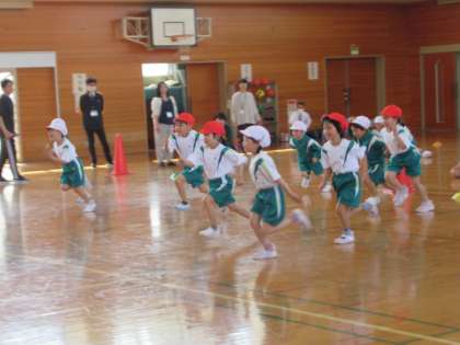 子供たちは、笛が鳴ると、ゴールまで力一杯走り抜けました。