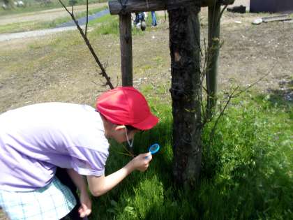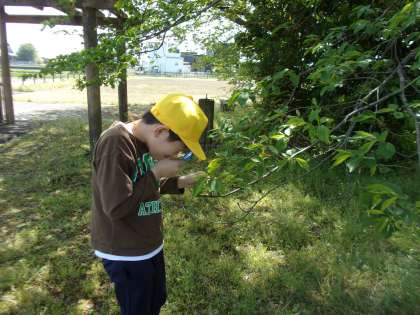 理科の時間に、春の植物の観察をしました。サクラの葉やタンポポの花等、様々な植物を調べました。子供たちは、虫眼鏡を使い、細かなところまで観察しました。