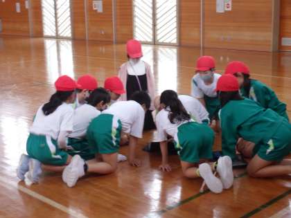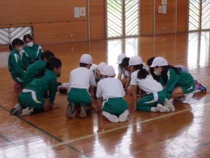 運動会の応援合戦に向けて、6年生が計画している応援歌を5年生に教えました。曲を聴きながら、6年生が考えた歌詞を5年生が確かめました。来週の結団式を控え、気持ちが少しずつ高まっています。