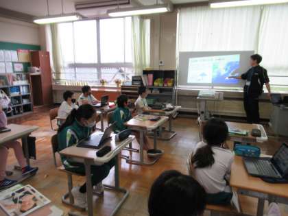 天気図を見ながら、天気の様子を考えました。雲はどのように動いているか、例示された天気図の場合、富山県の天気はどうなるかなどについて考えました。