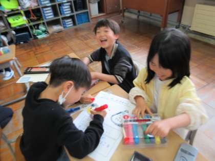 4月26日(水)1年生 学級活動 公開日 2023/04/26 更新日 2023/04/26 1年生 クラスのみんなのために、ひとりひとりが仕事をしようと当番活動について話し合いました。「ゆうびんがかり」「あかるいあいさつがかり」「ちぇっくがかり」など、それぞれで集まって、仕事や目当てについて書きました。