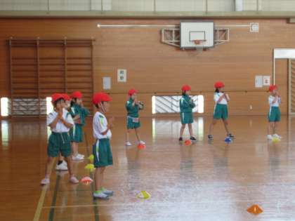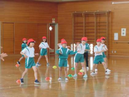 5月9日(火)1・2・3年生 体育の学習 公開日 2023/05/09 更新日 2023/05/09 1年生 運動会の下学年競技の練習をしています。音楽に合わせて可愛らしく体を動かします。保護者の方は、運動会本番をぜひ楽しみにお待ちください。