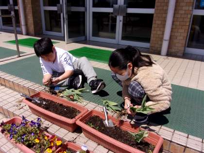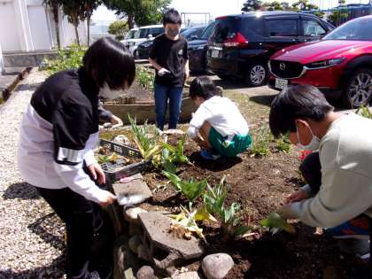 5月9日(火)委員会活動 公開日 2023/05/09 更新日 2023/05/09 朝日小学校NEWS 委員会からの呼びかけで、チューリップの球根取りをしました。花を終えてから、しばらく球根を太らせていたものを抜いていきました。 上学年の児童が、下学年の児童に、「シャベルをここにさしてね」「茎をもってそうっとひっぱって」などと、声をかけながら一緒に活動しました。