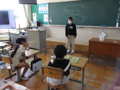 5月9日(火) 3年生 外国語活動 公開日 2023/05/09 更新日 2023/05/09 3年生 外国語活動では、様子を尋ねる言い方を学習しました。ジェスチャーゲームでは、「How are you?」と尋ねた後に、嬉しい様子や悲しい様子などのジェスチャーをし、英語で様子を答える活動をしました。子供たちは楽しみながら英語に親しみました。