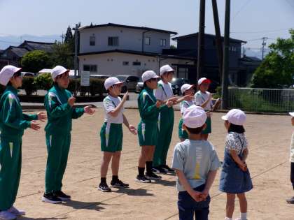 5月10日(水)応援練習 公開日 2023/05/10 更新日 2023/05/10 6年生 応援練習をグラウンドで行いました。団ごとに分かれ、団結コールや応援歌の練習をしました。青空に大きなかけ声や手拍子が響き渡りました。