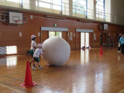 5月15日(月) 運動会競技練習 公開日 2023/05/15 更新日 2023/05/15 朝日小学校NEWS 今日は大玉すいか転がしの練習をしました。初めて見る大玉に、子ども達はわくわくしている様子です。ペアになって、ゴールまで大玉を転がします。本番も楽しみです。