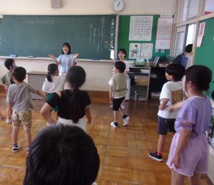 のびのびタイムに、下学年と応援歌の練習をしました。下学年に分かりやすく伝わるように、振り付けを反転して踊ったり、短いフレーズに分けて歌ったりしました。練習が終わった後、「下学年だけで練習をしてよかった。楽しそうに応援していた」「1年生によかったところをすぐに伝えると、とても大きな声になった」と振り返りました。