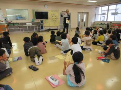 来週のなかよし遠足に向けて、みんなでしおりを読みました。遠足では、ファミリーパークへ行き、なかよし班で協力してクイズを解きます。とても楽しみな様子が伝わってきました。当日は、みんなで安全に、元気に、楽しく活動しましょう。