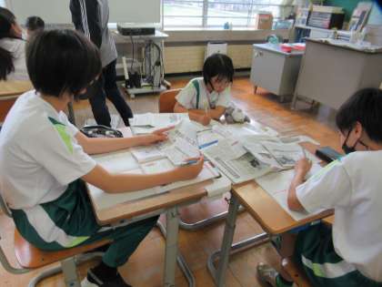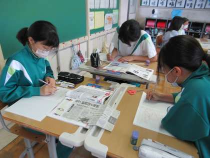 5月29日(金)6年生 国語の学習 公開日 2023/05/30 更新日 2023/05/30 6年生 新聞を読んで、政治についての気になる記事を探しました。日本国内のことだけでなく、諸外国についてたくさんの記事が見つかりました。その中から6年生はどの記事に注目したのでしょうか。気になる記事を切り取って、ノートにまとめました。
