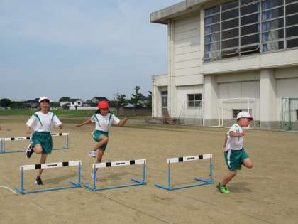 6月7日(水)5、6年生 ハードル走 公開日 2023/06/07 更新日 2023/06/07 6年生 体育の学習で、ハードル走をしています。今日は、ハードルがあってもスピードを落とさず走ることと、ハードル間を3歩で走ることを意識しました。