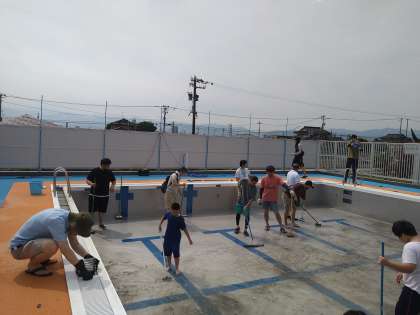 育友会員の方々に多数の参加をいただき、プール清掃を行いました。出入口、壁、溝等の細かいところまで丁寧に整えていただきました。ありがとうございました。