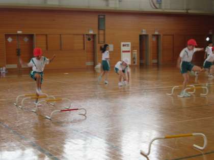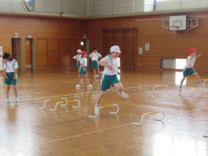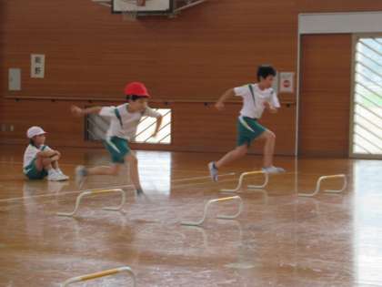 6月12日(月)3年生 体育の学習 公開日 2023/06/12 更新日 2023/06/12 3年生 今日はミニハードルを使って、ハードル走の練習をしました。自分たちでミニハードルを好きな間隔で並べて、好きなコースを楽しみました。ぴょいぴょいっと、軽々跳んでいます。