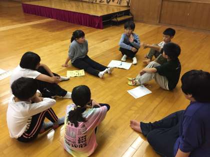 6月13日(火)4.5年 集団宿泊学習 聴き合いタイム 公開日 2023/06/14 更新日 2023/06/14 学校行事 1日目の活動を終えた後、班や全体で活動の振り返りをしました。牛岳登山がとても大変だったこと、それでも仲間の励ましがあって頂上まで登ることができたこと、頂上で友達と食べたお弁当がとても美味しかったことなど、今日感じたことを発表し、聴き合いました。