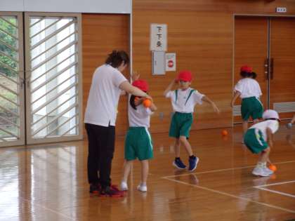 体育協会から指導員の方々に来ていただき、「投の運動」の体育教室を行いました。