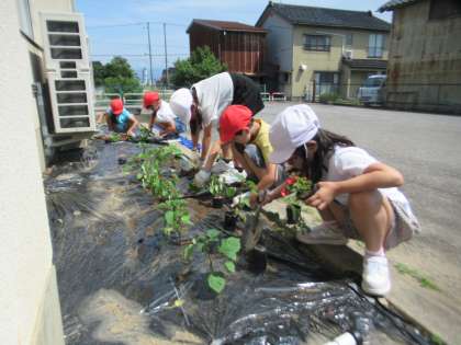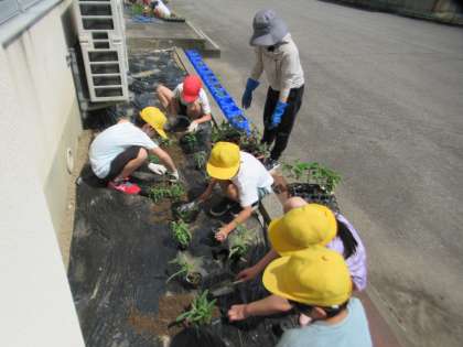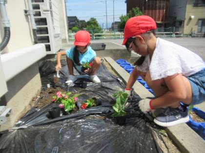 6月20日(火)3年生 花植え 公開日 2023/06/20 更新日 2023/06/20 3年生 教室を出てすぐのなかよし広場の花壇に、夏の花を植えました。午後からの日差しの強い時間でしたが、一生懸命植えました。これから大切に世話をしていきます。