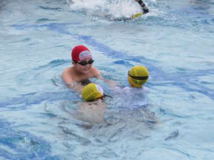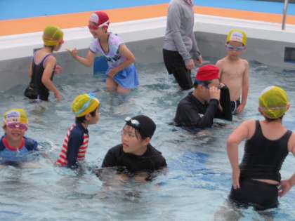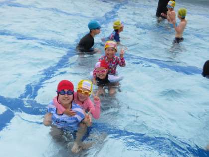 6月21日(水) プール開き 1・6年生 公開日 2023/06/21 更新日 2023/06/21 1年生 1年生は初めて学校の大きなプールに入りました。6年生のお兄さんお姉さんとペアになって、安全に気を付けて水に親しみました。じゃんけんをしたり、水を掛け合ったり、手を引いてもらって一緒に泳いだり、おんぶしてもらったりしてなかよく楽しみました。