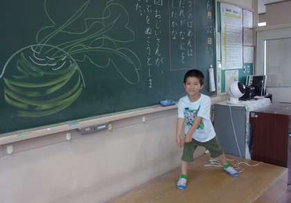 「大きなかぶ」の「おじいさんが、かぶをぬこうとしました」の場面で、早速おじいさんになりたがる子供たち。