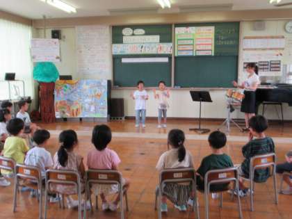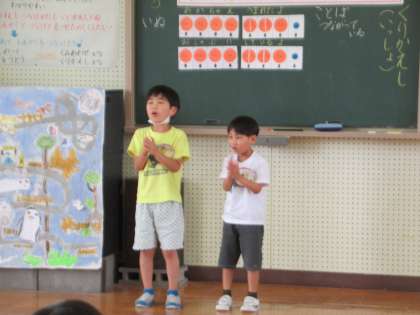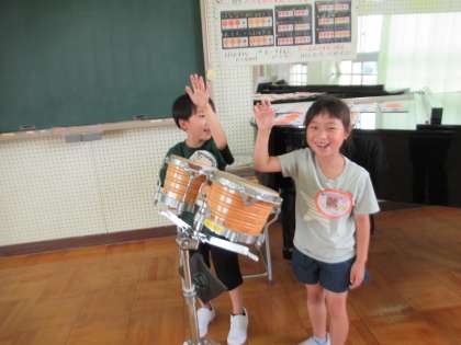 6月27日(火)1年生 音楽の学習 公開日 2023/06/27 更新日 2023/06/27 1年生 ペアになって、ずうずうりずむに取り組みました。手をたたいて、リズムに言葉をあてはめてそれぞれの動物のリズムを作りました。 「このリズムはどんなリズムかな?」 「くりかえしのリズムだね、4回も繰り返していたよ」 「連続だとわからなくなったよ」 「僕はわかりやすいと思ったよ」 と、友達のリズムについて話しながら、楽しみました。