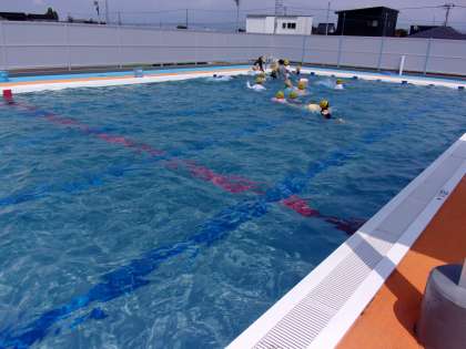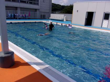 初めての水泳学習では、水中を恐る恐る歩いていたのですが、今日は水中じゃんけんや宝探し等、楽しみながら何度も潜り、水に慣れ親しんでいました。低学年の子供たちの日々の成長が今後も楽しみです。