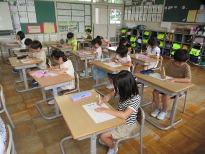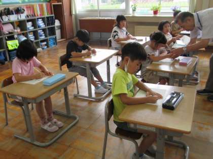 7月3日(月)1年生 書写の学習 公開日 2023/07/03 更新日 2023/07/03 1年生 今日は正しい書き順を確かめながらひらがなの練習をしています。正しい鉛筆の持ち方、正しい姿勢もチェックしながら、丁寧に取り組みました。