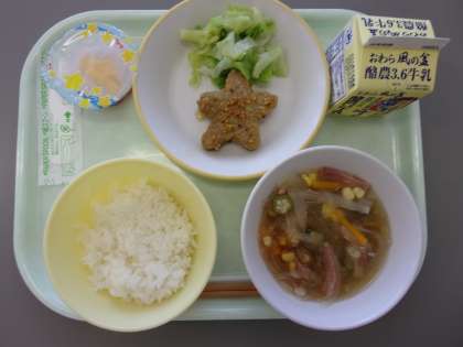 今日の給食は七夕の特別メニューです。子供たちからは、給食のきらきらとした雰囲気を楽しみにする声を多く聞きました。