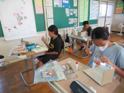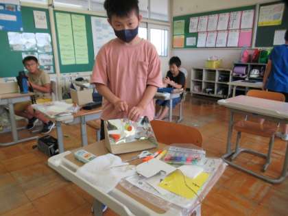 7月4日(火)5年生 図工の学習 公開日 2023/07/04 更新日 2023/07/04 5年生 鏡を使った作品作りに取り組んでいます。土台を作り、色を塗ったり粘土やモールをつかって装飾していきます。教室、体育館、サッカー場など、一人一人が、好きな物を表現しました。