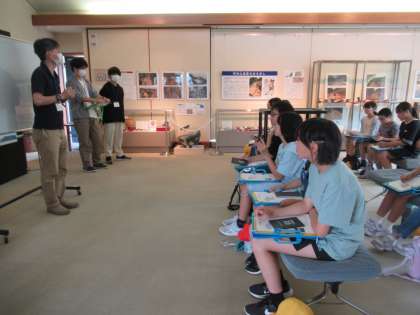 7月5日(水)6年生 安田城跡見学 公開日 2023/07/05 更新日 2023/07/05 6年生 総合的な学習の時間に、安田城資料館を訪れました。富山大学の学生さんから、安田城を守るために工夫されたつくりについて実際にその場に立って教わりました。また、攻めるにはどのようにするとよいか考えました。毎日、安田城の近くを何気なく通っていた子供や、何度も安田城に訪れたことのある子供でも、まだ知らないことがたくさんあることに気付きました。